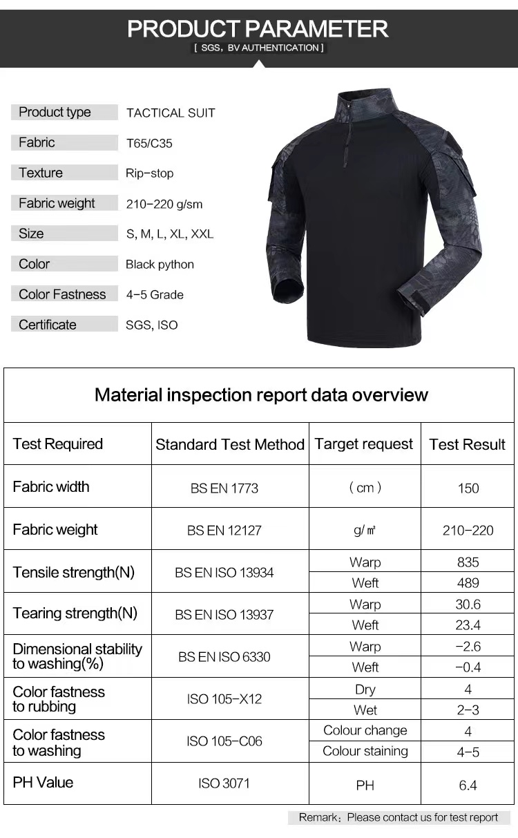 | Color | FG, AU, ACU, CP, LCP, Digital Desert, Digital Woodland, Woodland Camouflage, Tricolor Desert, Black, Olive Green, Khaki, Navy,Woodland Python, Mountain Python, Black Python, Wasteland Python, Black CP |