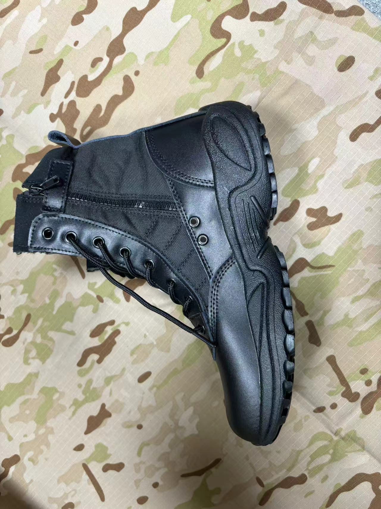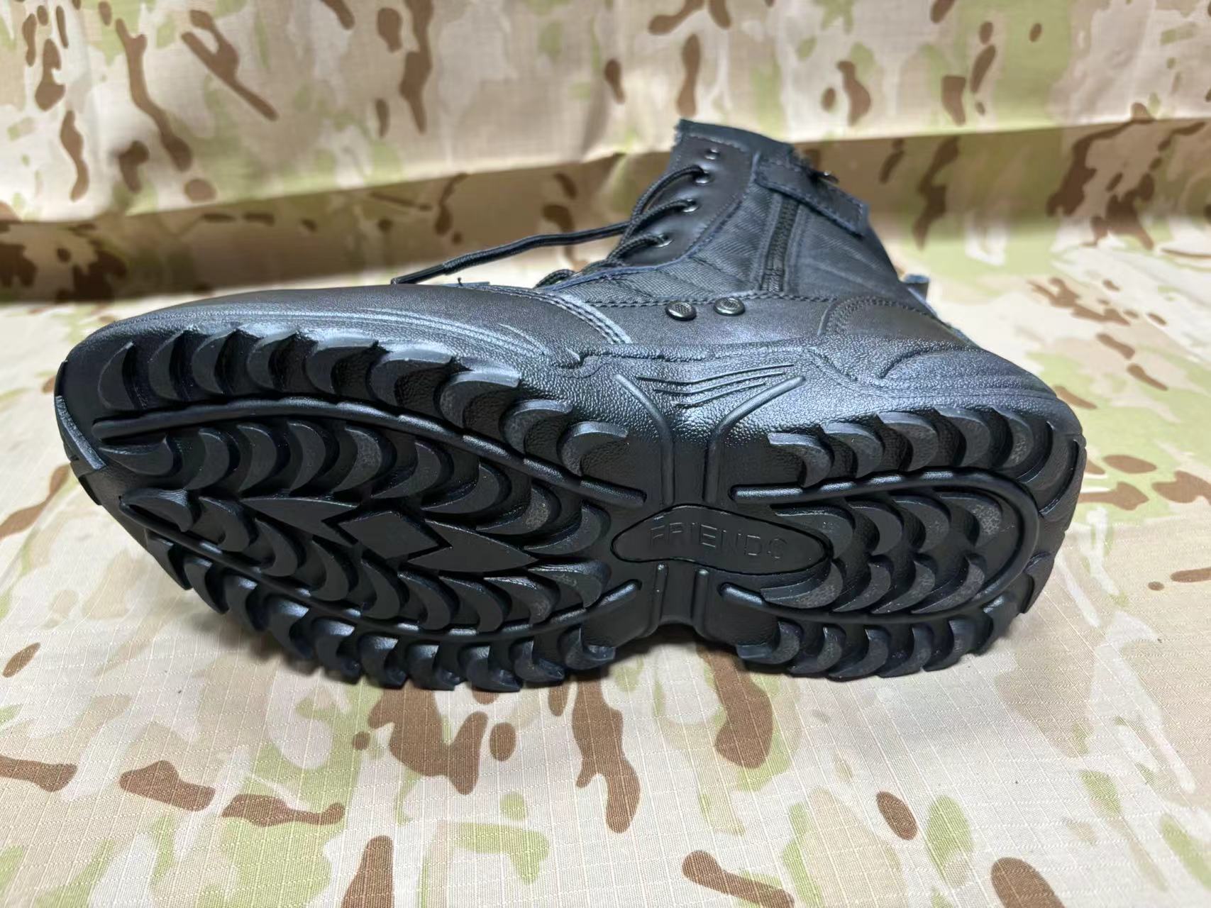 Black Leather Dural Layer Rubber Injection Military Police Shoes Tactical Injected Boots